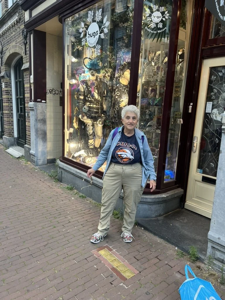In the summer of 2025, we were lucky enough to meet Rene Rosechild, who lives in Denver, Colorado, today, but whose family roots trace back via Canada to the Netherlands. Rene’s mother, Rosalie Nathans, was a Jewish Amsterdammer who was liberated from Bergen-Belsen concentration camp in 1945. When she returned to Amsterdam, she discovered that she was the only member of her family who had survived the war. Rosalie’s mother, her father, her brother, her sister, her sister-in-law, her brother-in-law and her two young nephews had all been murdered or succumbed to disease or deprivation in the Nazi concentration camps. Having had her entire life taken away from her, Rosalie made the decision at the age of 20, to marry a Canadian soldier and emigrate to Canada.